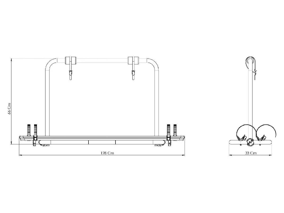 Durch den Klappmechanismus des Bügels kann der Deichselkasten erreicht werden, was das Einladen des Deichselkasten erleichtert. Der Carry Bike Eco Fahrradträger wird standardmäßig mit 2 Radschienen, 2 Gurten und Befestigungsmaterial geliefert.