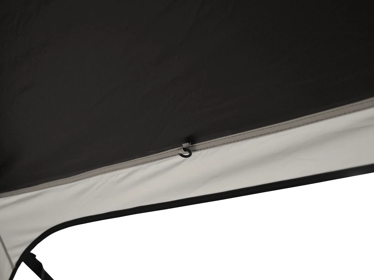 Das Dach dieses Air Shelter 365 ist aus der speziellen Obelink CoolDark-Zeltplane gefertigt. Dieses Zeltmaterial ist absolut lichtundurchlässig. So können Sie sich mit einem erfrischenden Getränk in den kühlen Schatten setzen.