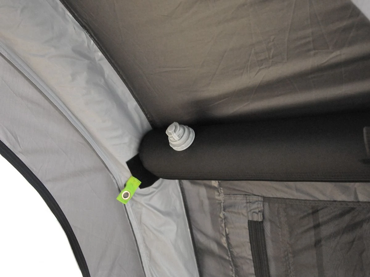 Das Obelink Vacation Easy Air ist mit aufblasbaren Luftschläuchen ausgestattet, die Ventile befinden sich an der Außenseite des Zeltes. Für das Dach werden 3 aufblasbare Spannstangen mitgeliefert. Auf diese Weise können Sie das Dach zusätzlich spannen, um eine gute Regenwasserabfluss zu gewährleisten und das Zelt noch stabil zu machen. Die Handpumpe ist ebenfalls im Lieferumfang enthalten!